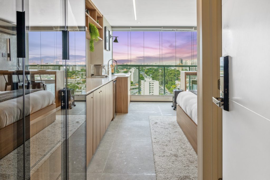 Rising above one of São Paulo’s most sought-after districts, the Ibirapuera tower places a private residence within reach of everything the city offers. Warm wood interiors and floor-to-ceiling windows open onto the skyline, while thoughtfully designed kitchens and bathrooms bring the calm of a personal home to the convenience of a serviced stay. Guests enjoy access to building amenities — rooftop pool, fitness center, 24-hour concierge — alongside Parque Ibirapuera just steps away, ensuring a rhythm that is both urban and deeply restorative.